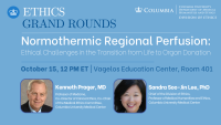On October 15, 2024, Dr. Kenneth Prager, MD spoke on the ethical challenges of Normothermic Regional Perfusion (NRP), in conversation with Division of Ethics Chief Sandra Soo-Jin Lee, PhD. This was a hybrid event, taking place at the Vagelos Education Center, and online.
