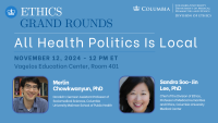 On November 12, Division of Ethics affiliate faculty member Merlin Chowkwanyun, PhD joined us for Ethics Grands Rounds to discuss their new book: All Health Politics is Local: Community Battles for Medical Care and Environmental Health, in conversation with Sandra Soo-Jin Lee, PhD.