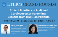 On September 16, 2025, Department of Biomedical Informatics Professor Pierre Elias, MD discussed the use of AI-based tools in clinical care with Division of Ethics Chief Sandra Soo-Jin Lee, PhD.