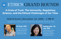 Join us on November 18th, 2025, for a conversation with Columbia University Professor Gil Eyal, PhD about the changing relationship between science, medicine, and politics, and how this crisis is affecting medical professionals and biomedical researchers, in discussion with Division of Ethics Chief Sandra Soo-Jin Lee, PhD.